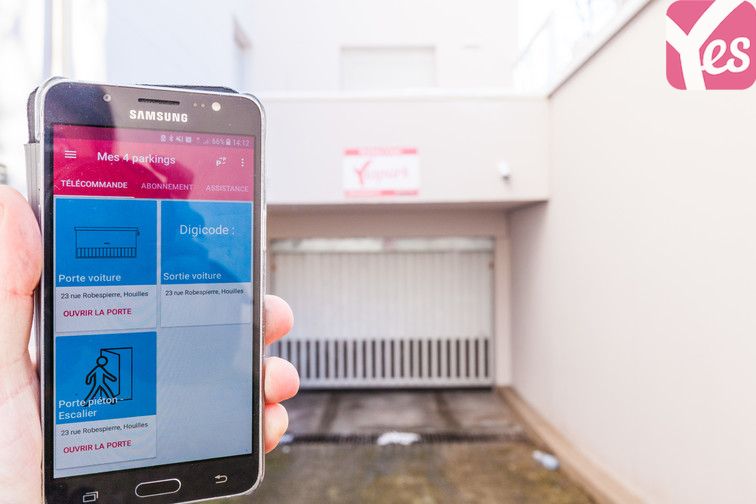 L’entrée du parking se situe au 23 rue Robespierre. Le panneau Yespark vous indique l’entrée du parking. Ouvrez les différents accès grâce à votre application Yespark.