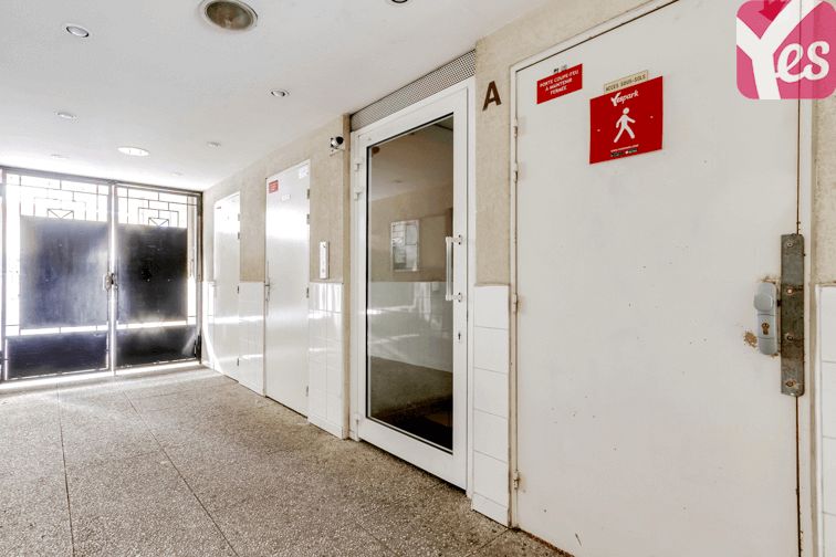 La porte voiture se situe au 77 rue de la Mare. La porte piéton se situe à la même adresse. Ouvrez ces portes avec l'application Yespark.