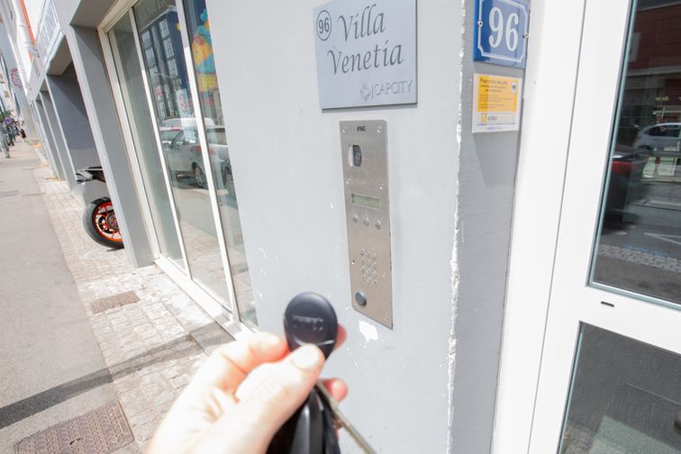 L’entrée du parking se situe au Allee Gergaud. L’entrée pour les piétons se situe au Allee Gergaud.
