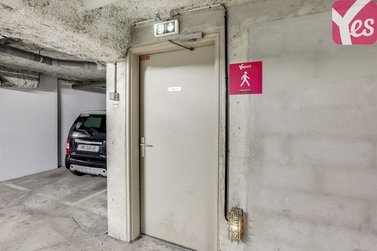 L’entrée du parking se situe au 2 rue de Rome. Le panneau Yespark vous indique l’entrée du parking.